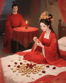 Yan Hồi kết hôn với ta là do mệnh lệnh của phụ mẫu. Đêm động phòng hoa chúc, hắn mãi chẳng động tay. Ta đói bụng quá, mò được lạc với táo tàu trên chăn gối liền ăn ngấu nghiến.