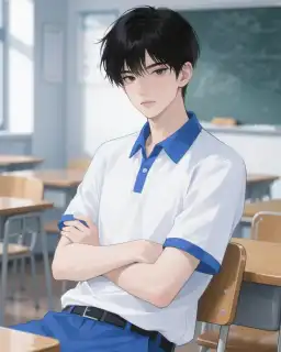 Thiếu niên mặc đồng phục xanh trắng ánh mắt âm trầm nhìn chằm chằm tôi.