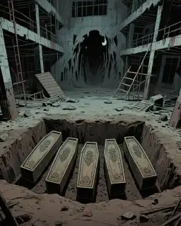 Một công trường đào được năm chiếc qu/an t/ài, bốn chiếc có th* th/ể, một chiếc trống rỗng. Những chuyện kỳ quái liên tiếp xảy ra tại công trình, chưa đầy ba ngày đã có hai công nhân nhập viện. Tôi nhận lời nhờ đến công trường chuyển qu/an t/ài. Nhưng vị chuyên gia mà công trường mời về lại ngăn cản tôi hết lần này đến lần khác, không cho phép tôi di chuyển chúng. Ông ta dùng giọng âm trầm đe dọa: "Trong vòng bảy ngày, không ai được dịch chuyển năm cỗ qu/an t/ài này. Ai động vào sẽ phải nằm trong đó."