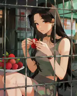 Tôi ngồi một mình trong lồng, lười biếng ăn vải thiều.