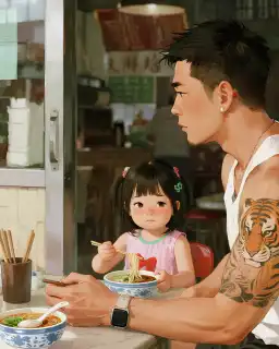 Nhà tôi mở tiệm mì. Món mì bò của bố làm ngon nhất, nhưng đó là phần dành cho em trai và khách hàng. Trong tô của tôi, mãi chỉ có sợi mì trắng và chút nước dùng loãng. Mẹ bảo, con gái mà ăn nhiều sẽ m/ập, khó lấy chồng. Ngày nào, người chú xăm hình hổ trên cánh tay cũng đến ăn không trả tiền, mẹ tôi chẳng dám hé răng. Hôm nay, hắn lại tới, ngồi phịch xuống ghế, chỉ vào tô mì của tôi quát: "Cái đ*m mẹ! Nhóc con, sao trong tô mày chẳng có cả cái trứng?"