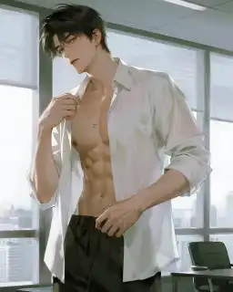 Áo sơ mi tuột nửa vời, tám múi cơ bụng lộ ra chói lóa.
