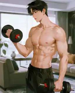 【Từ nay không tập thể dục giữa phòng khách nữa, con trai để lộ cơ bụng thế này thật không đứng đắn, mình có tới 8 múi nữa chứ, cô ấy sẽ gh/ét mất thôi!】