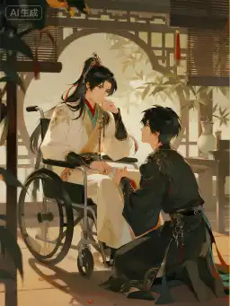 Ta xoa xoa đầu hắn, vỗ nhẹ vào đôi chân đang ngồi trên xe lăn: