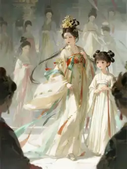 Tôi khoác xiêm y gấm vóc, thong thả bước xuống thềm cung giữa rừng cung nữ hầu cận.