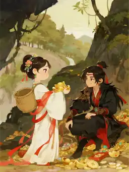 Trong lúc lên núi hái th/uốc, tôi sơ ý rơi xuống hang động, suýt nữa thì bị chói m/ù bởi vô số vàng bạc châu báu chất đầy mặt đất. Tôi đang cảm thán phú quý trời ban cuối cùng cũng đến lượt mình, bỗng nhìn thấy một dòng chữ khắc trên vách đ/á: "Lúc sinh thời ta chưa từng cưới vợ, sau khi ch*t mang theo lễ vật cầu hôn vào m/ộ, lặng lẽ chờ người hữu duyên." Suy nghĩ hồi lâu, tôi quyết định quay sang hướng khác tiếp tục nhặt nhạnh. "Cộp" một tiếng, đầu tôi đ/ập phải một bức "tường", ngẩng lên nhìn thì thấy một nam tử bệ/nh bạc nhưng diện mạo tuấn tú đang nhìn tôi với ánh mắt nửa như cười nửa như mỉa. "Thật trùng hợp, ngươi cũng đến đây hưởng lộc?" Tôi ngượng ngùng giơ lên một thỏi vàng, "Thấy là có phần chứ?" Nam tử đẹp trai chỉ vào vạt áo phồng lên như trái bóng của tôi, khẽ cười: "Đã lấy lễ vật cầu hôn của ta... tức là đã là người của ta rồi."