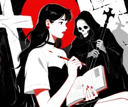 Tôi nhặt được cuốn Death Note, nhìn vị Thần Ch*t đang dụ dỗ tôi gi*t người. Tôi hỏi liệu có máy in không? Viết tay thì không bao giờ hết được, đúng là không thể nào viết xuể. Thần Ch*t đờ người ra, thở dài: "Cậu chẳng có chút đạo đức nào sao? Gi*t nhiều người thế này, bố mẹ cậu sẽ khóc mất." "Bố mẹ tôi ch*t từ lâu rồi." Hắn ngập ngừng, hỏi tiếp: "Thế... còn người thân khác chứ?" "Có chứ, số tiền đền bù di sản của bố mẹ tôi đều bị họ cư/ớp sạch." Thần Ch*t nghẹn lời, đổi hướng: "Giáo viên không dạy cậu không được làm hại người khác à?" "Tôi bị b/ắt n/ạt ở trường, ông ấy bảo tôi nhẫn nhịn, nói tất cả là do lỗi của tôi." Hắn nhìn chằm chằm vào cuốn sổ trong tay tôi, giọng bất lực: "Cậu có tay có chân, không đi làm ki/ếm tiền được sao?" "Vào xưởng làm từ 7 giờ sáng đến 7 giờ tối, kết quả lương bị bọn cò mồi lấy hết." Thần Ch*t liếc nhìn xung quanh: "Ít nhất cậu còn có chỗ ở." "Tôi dùng cạy khóa chui vào đây thôi, người thuê trước tuần trước mới ch*t vì làm việc 996." Thần Ch*t lúc này im bặt.