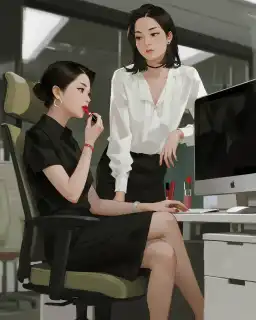 Trong lúc tôi đang tô lại son thì một đồng nghiệp bỗng vỗ nhẹ vào vai.