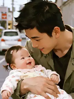 Tôi khẽ vuốt má em bé, nó bật cười khúc khích trước mặt tôi.