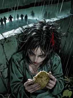 Tôi là người làng quê, người phụ nữ đẹp nhất làng chúng tôi là một người đi/ên. Chồng cô ấy là anh hùng, năm xưa khi lũ bùn đ/á ập xuống núi, chính anh đã phát hiện đầu tiên và báo mọi người chạy trốn. Nhưng anh lại hy sinh thân mình để c/ứu một cụ già chân tay không linh hoạt, bị dòng lũ bùn cuốn đi mất tích. Từ đó, người phụ nữ hóa đi/ên. Cô ấy mãi mãi không quên được trận mưa lớn ngày hôm ấy, ngày ngày ôm chiếc ô đến nơi chồng mình hy sinh đợi chờ, mong được đón chồng về nhà. Ngày này qua ngày khác, năm này qua năm khác.