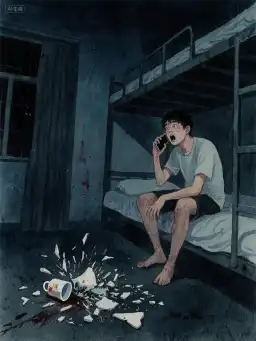 Sau khi tắt đèn ký túc xá, tôi nhận được tin nhắn lạ: [10 giây sau, chiếc cốc sẽ vỡ.] Đang không hiểu chuyện gì xảy ra, bỗng nghe tiếng "bịch", chiếc cốc sứ của đứa bạn cùng phòng vỡ tan tành. Tôi sửng sốt, cúi nhìn điện thoại thì màn hình lại hiện lên dòng chữ khác: [Một tiếng sau, bạn sẽ ch*t!]