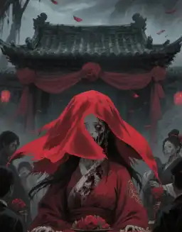 Giờ lành đã điểm, lễ bái thành đôi kết thúc, cô dâu mặc áo cưới đỏ như m/áu, chậm chạp không chịu đứng dậy. Gió lật tấm khăn che mặt, lộ ra cái đầu người phụ nữ th/ối r/ữa một nửa, vô h/ồn nhìn về phía tôi. Tôi muốn bỏ chạy, nhưng cổ tay bị một bàn tay lạnh buốt siết ch/ặt. "Phu nhân, đi đâu vậy?" mụ mối cười lạnh, "Phải dự tiệc cưới chứ." Trên cổ tay phấn son của hắn, lộ rõ những vết tử ban màu tím sẫm. Thì ra tất cả khách mời trong tiệc cưới, đều không phải người sống. Kể cả tôi.