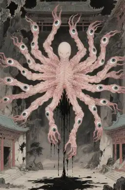 Thứ họ tôn thờ có thể là một sinh vật tà á/c nào đó. Như pho tượng thần bằng những mảnh thịt rữa nát được khâu vá trước mắt tôi đây.