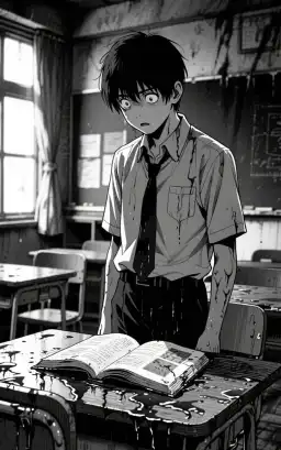 Bạn cùng bàn vì một cuốn tiểu thuyết kinh dị quá đ/áng s/ợ nên đã vứt nó xuống hồ. Tôi m/ua cuốn y hệt, ngâm nước xong nhét vào ngăn bàn hắn. Đêm đó, bạn cùng bàn đã ch*t đuối. Tôi giấu kín bí mật và tiếp tục đến lớp. Cho đến khi, một cuốn sách ướt sũng nước xuất hiện trong ngăn bàn tôi.