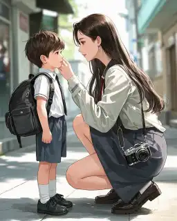 Nhưng không theo được anh ấy, tôi lại phát hiện con trai của anh - đứa bé đang học tiểu học. Tôi lén chụp ảnh cậu bé, thấy cậu vấp ngã liền chạy lại đỡ, thấy cậu thèm kẹo bông gòn lại móc tiền m/ua cho.